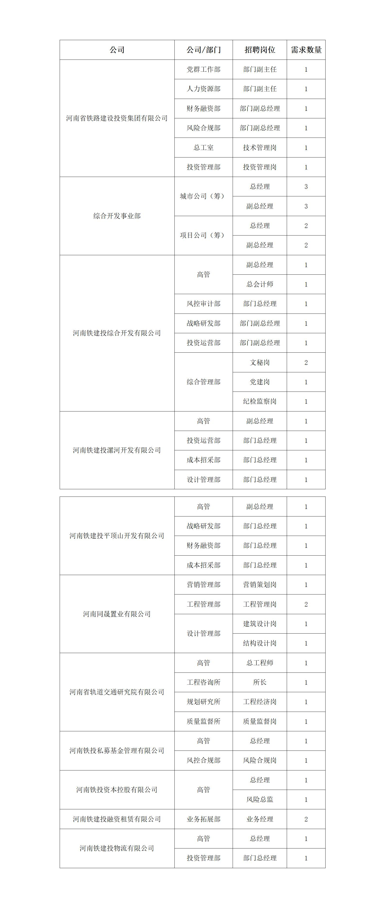 4.河南鐵建投集團有權(quán)根據(jù)崗位需求變化及報名情況等因素,調(diào)整、取消或終止個別崗位的招聘工作;